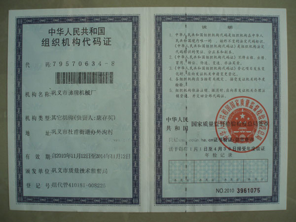 組織結(jié)構(gòu)代碼證